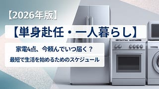 家電コラム 【単身赴任・一人暮らし】家電4点、今頼んでいつ届く?最短で生活を始めるためのスケジュール< 「引っ越し日が決まったのに、家電が何もない」 単身赴任や一人暮らしの立ち上げで一番困るのがここです。 冷蔵庫がないと食事が詰む。洗濯機がないと服が詰む。電子レンジがないと生活が詰む。 そして地味に痛いのが「届くまで待つ時間」と「受け取るため... 2026.01.26 家電コラム家電レンタル